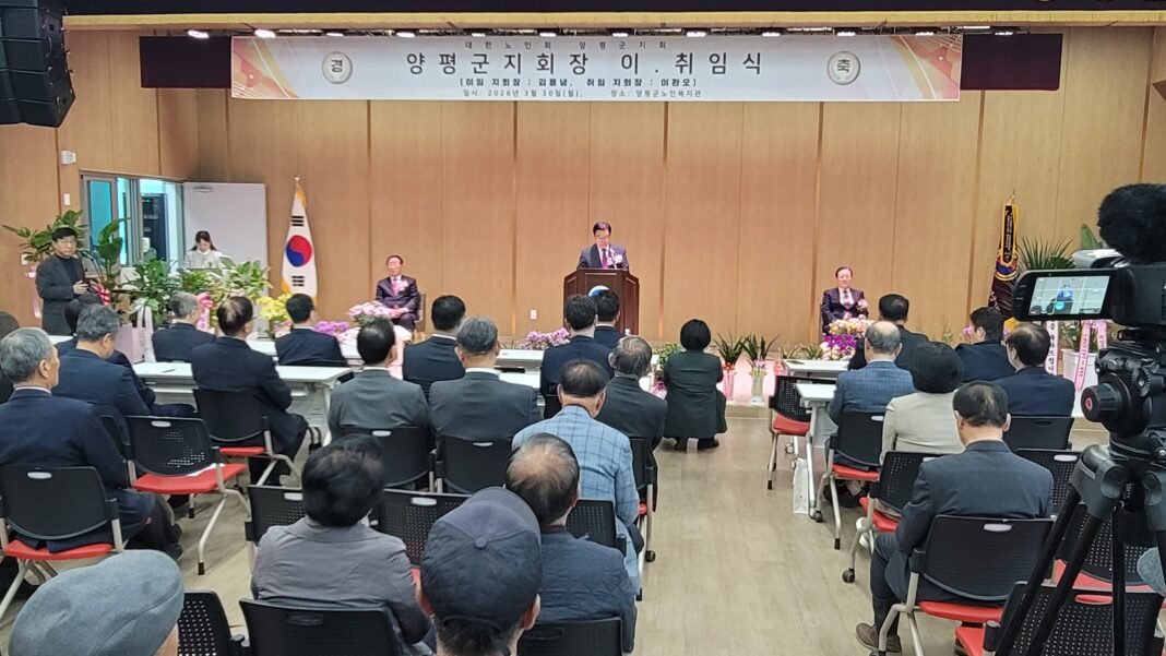 대한노인회 양평군지회는 지난 3월 30일 양평군 노인복지관 대강당에서 제14~16대 김용녕 지부장의 이임식과 제17대 이환오 지부장의 취임식을 성대하게 개최했다. 이날 행사에는 경기도 연합회장을 비롯해 전진선 양평군수, 13개 시·군 지회장 및 내외빈이 참석해 이임 지부장의 노고를 격려하고 신임 지부장의 취임을 축하했다.